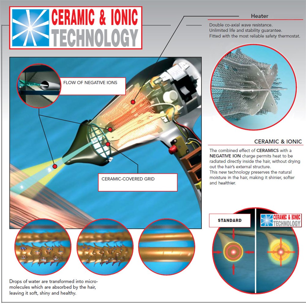 • Ceramic and ionic technology – leaves hair feeling ultra soft, shiny and frizz-free